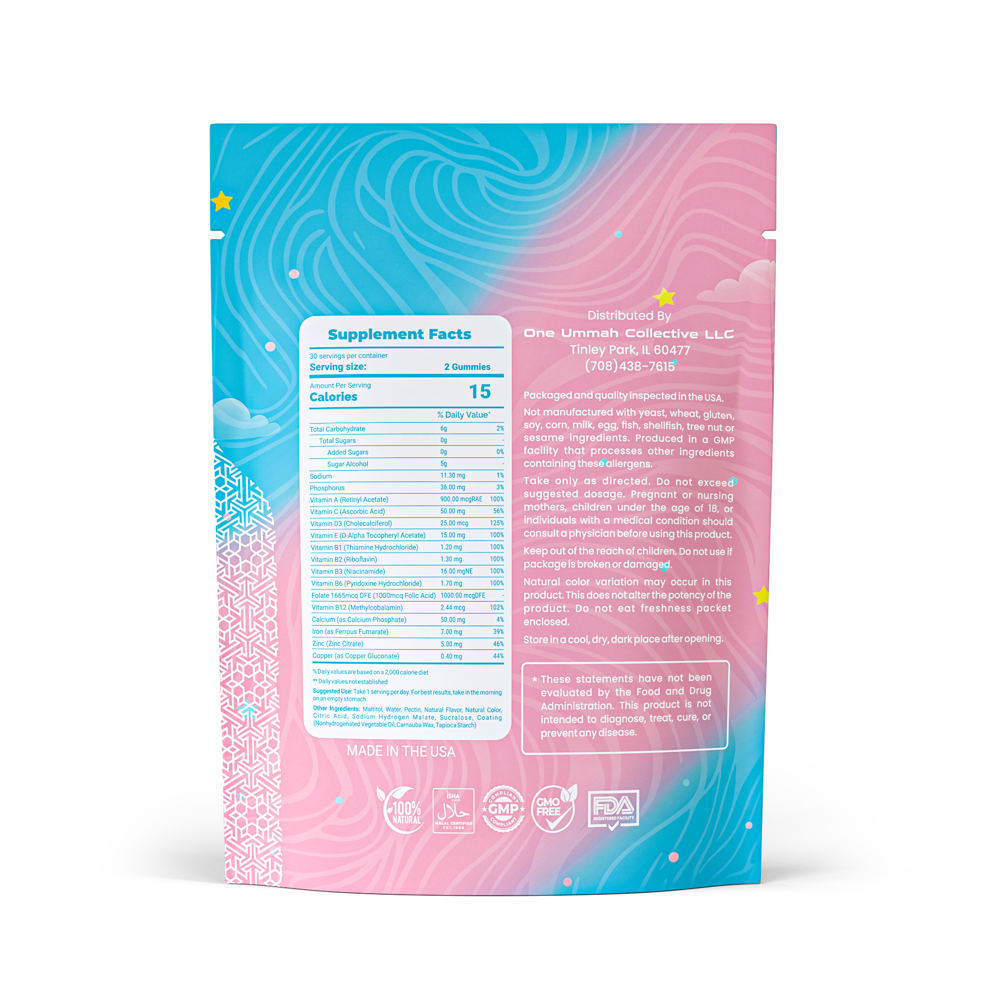 Your body is doing something incredible. Our Halal Prenatal Multivitamin Gummies were thoughtfully pharmacist-formulated to support the increased nutritional needs of pregnancy with a clean, sugar-free, halal-certified formula you can trust.
